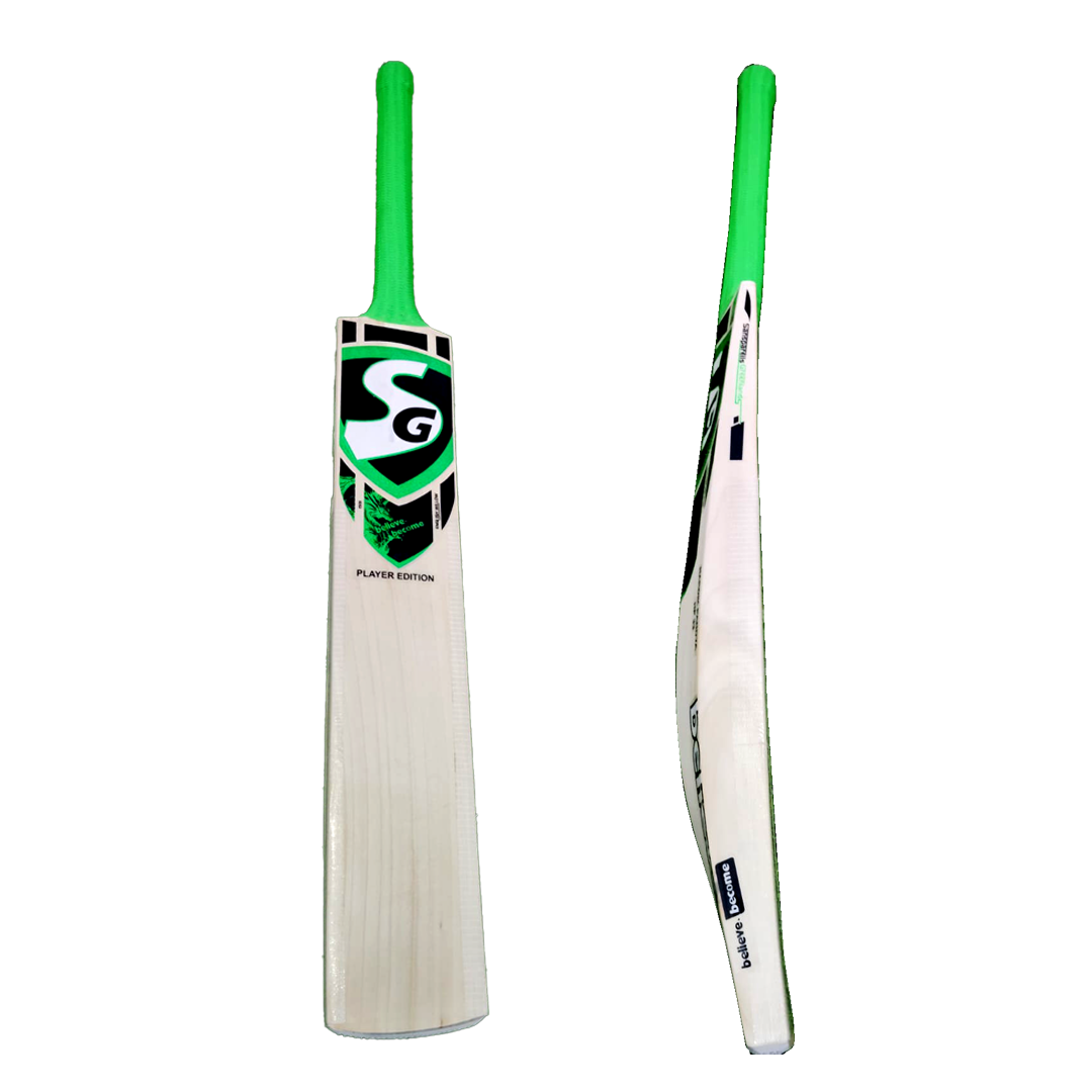 Take your batting to the next level with the SG Player Edition Cricket Bat, expertly crafted from top-grade English Willow. Designed for professional performance, this bat features thick edges, a pronounced spine, and an extended sweet spot for effortless boundary hitting. The dynamic green grip ensures a firm hold and vibrant style.